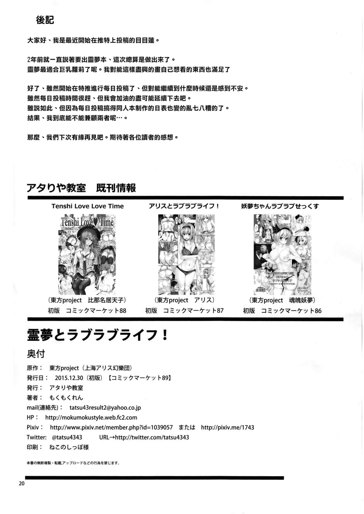 C89 アタりや教室 目目莲 霊梦とラブラブライフ! 东方Project 中国翻訳